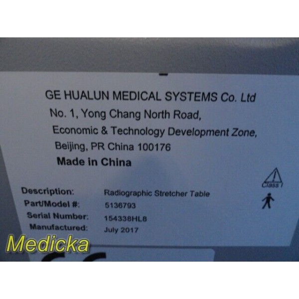 Item: | 2017 GE Medical P/N 5136793 Radiographic Stretcher Table/Mobile Table |