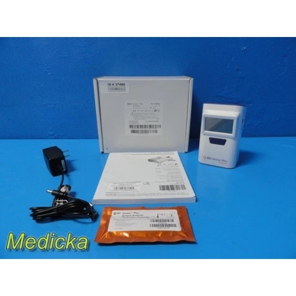This is a BD Veritor™ Plus Analyzer (REF 256066) in open-box, unused condition. Powers on and passes diagnostics but shows “No more days left” due to software expiration lock (exp. 2025-04-30). Includes a sealed, in-date verification cartridge (exp. 2026-04-08), BD power adapter, manual, and original padded box. Ideal for training, research, or parts. Clinical use not possible unless re-certified/reset by BD.