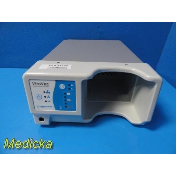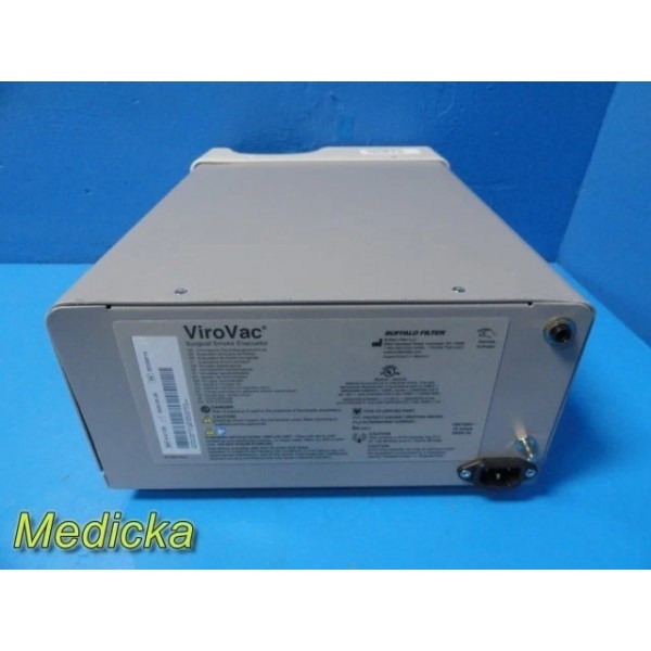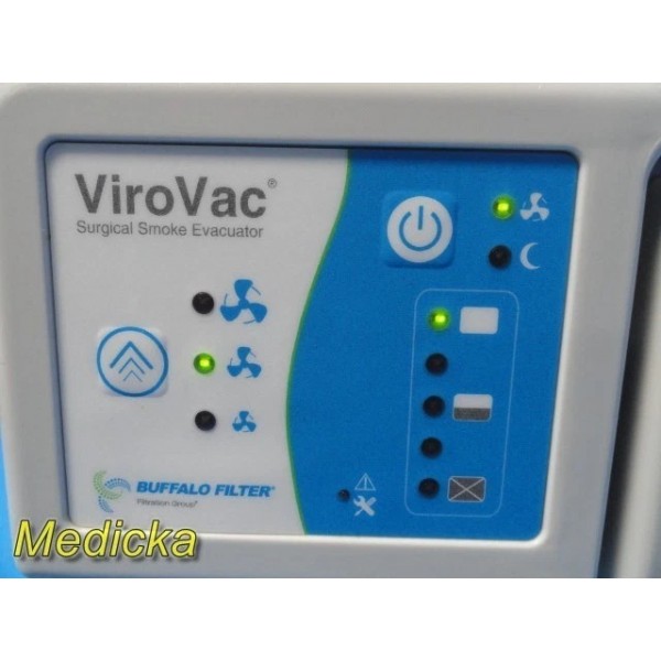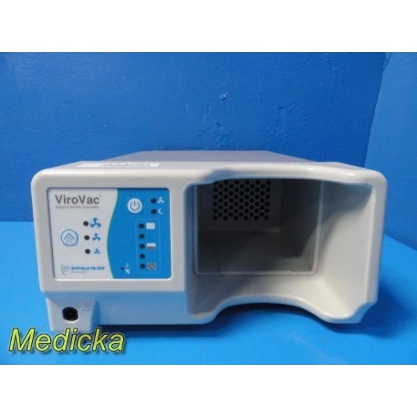 Buffalo Filter ViroVac® VV120 Surgical Smoke Evacuator with integrated front control panel. This unit powers on and lights up but does not respond with active suction when a compatible filter is inserted. Cosmetic signs of use with scuffs and surface wear, but no cracks or dents. Offered as-is for parts or repair.