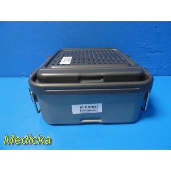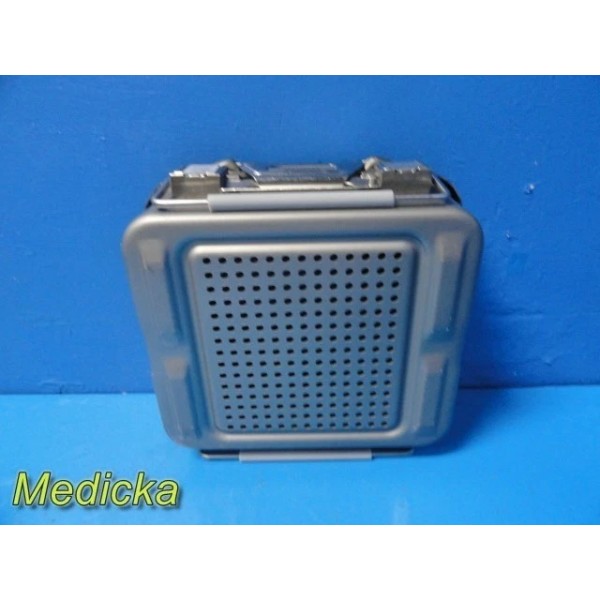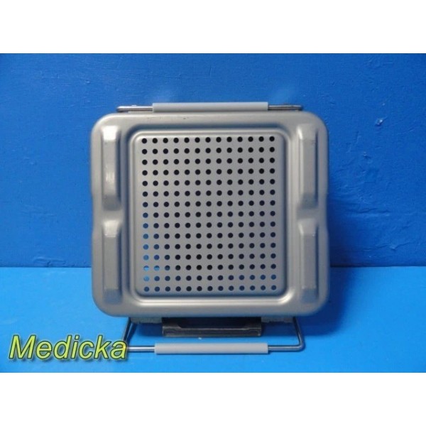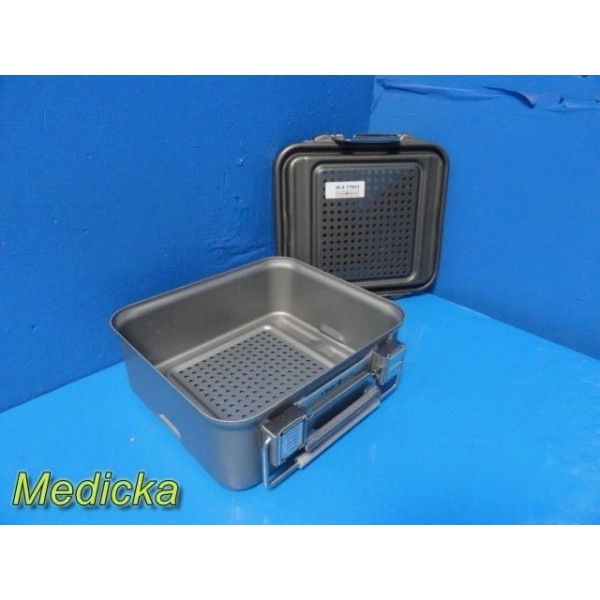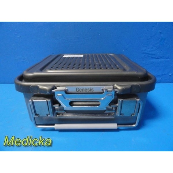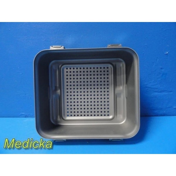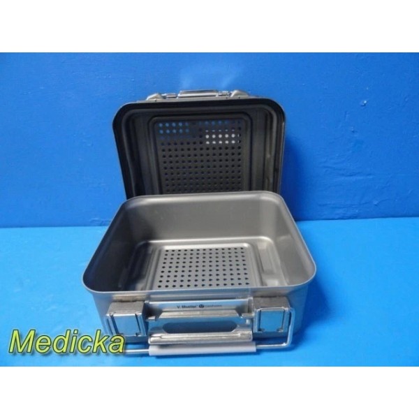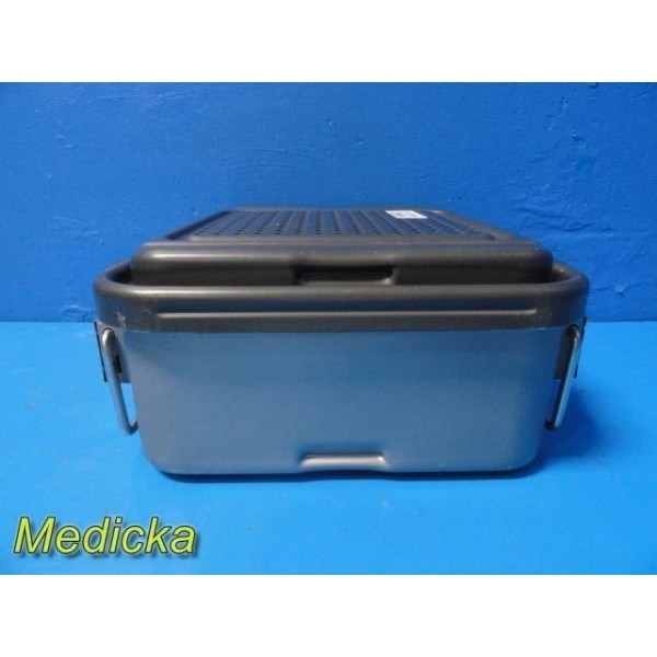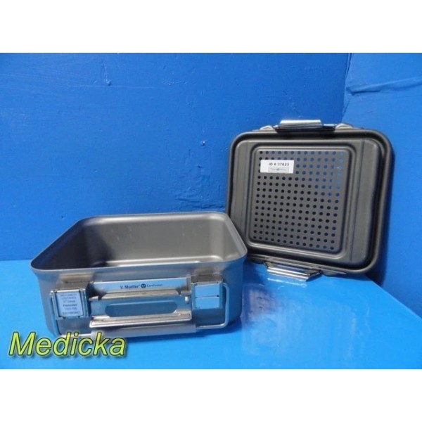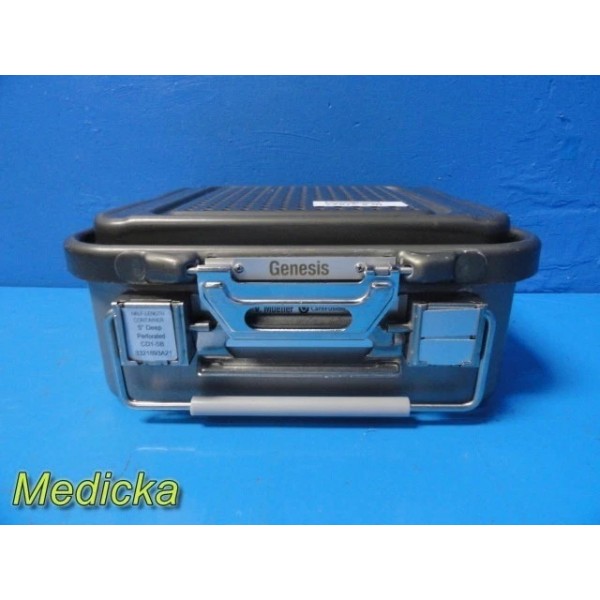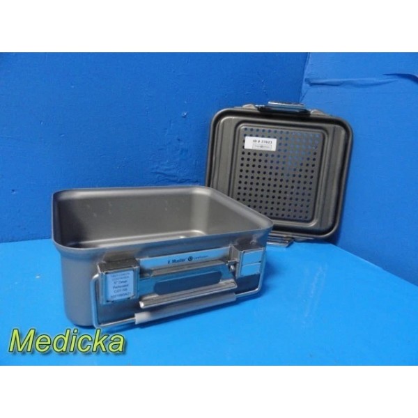 This is a pre-owned Genesis V. Mueller Cardinal Health Model CD1-5B Half-Length Sterilization Container in very good cosmetic condition. Lock clamps, handles, and silicone seals are intact, with no dents or cracks noted. The lid fits properly and shows only minor scuffs from prior use. Retention plates, instrument basket, silicone mesh, manual, and ID plate are not included.