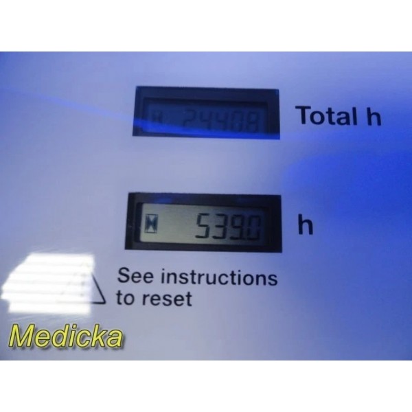 - Hour meters operational, displaying lamp and total hours.