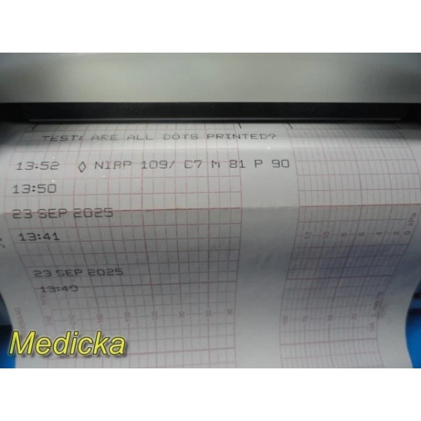 The GE 259A Maternal/Fetal Monitor is designed for obstetric monitoring and supports multiple parameters including ultrasound, TOCO, MECG/FECG, and NIBP. It features an integrated thermal printer, bright monochrome LCD display, functional controls, and ports for a range of accessories. This unit has been powered, tested with parameters, and passes self-test with no errors reported. Enjoys integrated power cord.