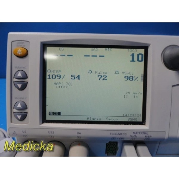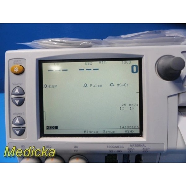 GE Corometrics 259A Fetal/Maternal Monitor – a trusted and proven system designed for comprehensive and simultaneous monitoring of fetal and maternal physiological parameters. The unit provides accurate measurement of ultrasound (FHR), TOCO, MECG, FECG, NIBP, and SpO₂. This unit has been tested for essential functionality and verified to perform key monitoring operations.
