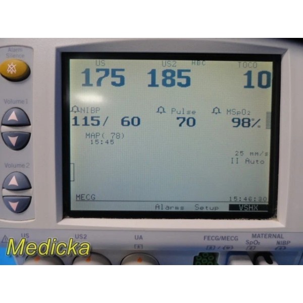 GE Corometrics 259A Fetal / Maternal Monitor — a trusted and clinically proven system for comprehensive fetal and maternal monitoring. Designed to provide accurate assessment of FHR (ultrasound), uterine activity (TOCO), maternal ECG, fetal ECG, NIBP, and SpO₂, this monitor supports multi-parameter observation with clear data presentation.