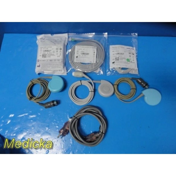 - (2) GE OEM 5700HAX / Corometrics Nautilus Ultrasound Transducers (8 ft cable, with button; both functional; tear noted in insulation near strain relief on one transducer)