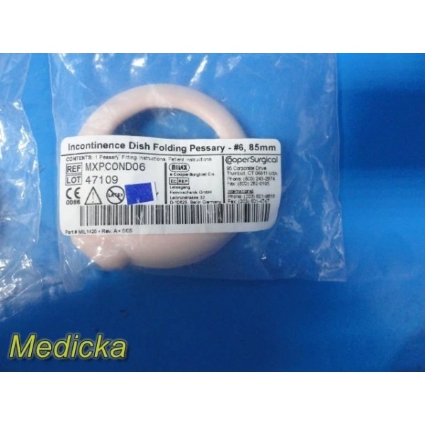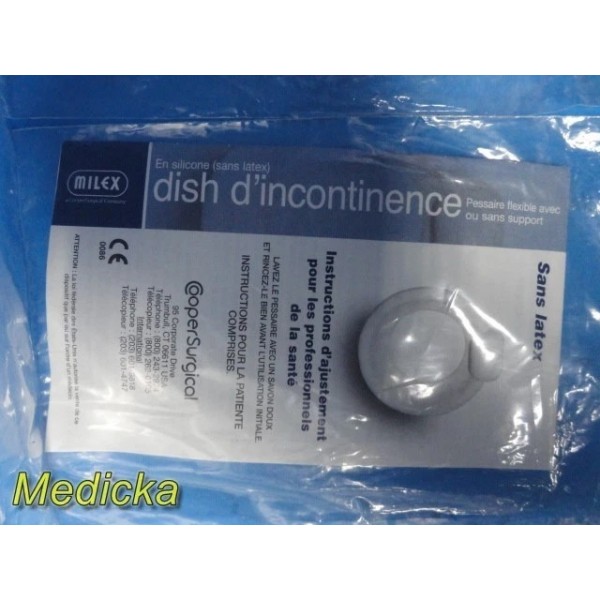Lot of two (2) CooperSurgical Milex Silicone Incontinence Dish Folding Pessaries, sizes #4 (75mm) and #6 (85mm). These units are unused, non-sterile, individually pouched, and include original manufacturer instructions. Excellent cosmetic condition with no signs of wear or damage.