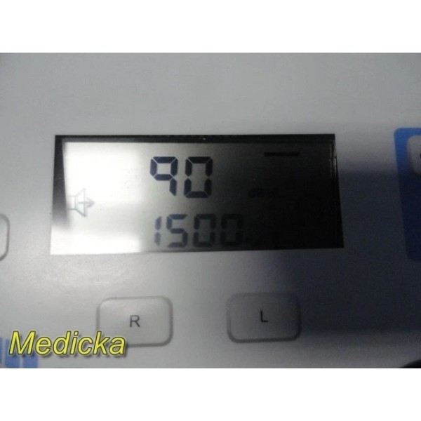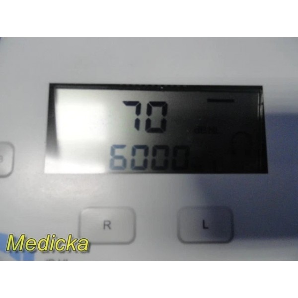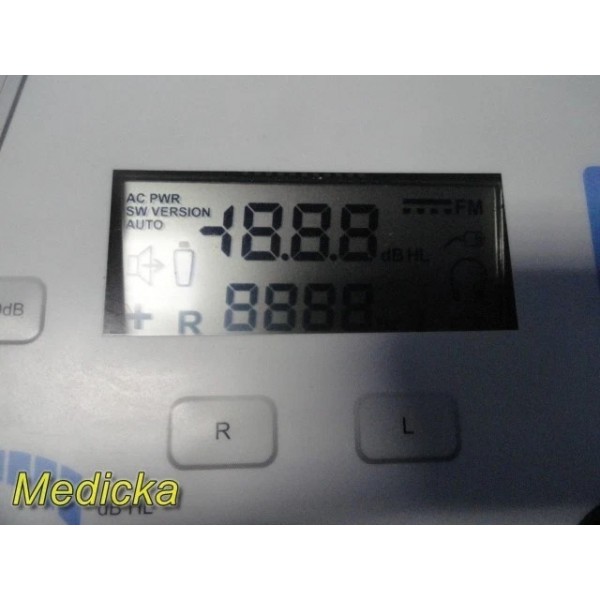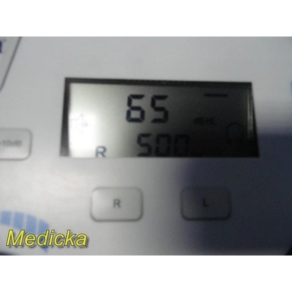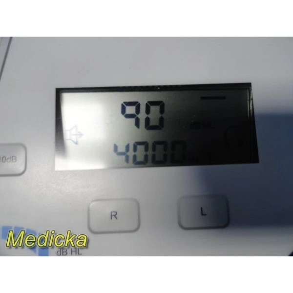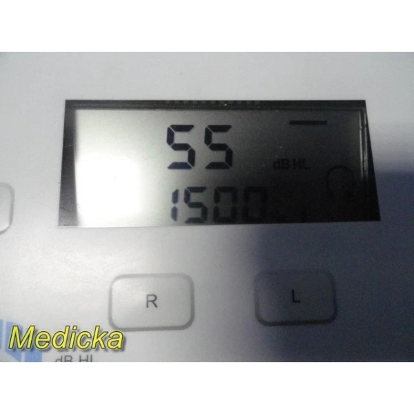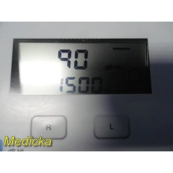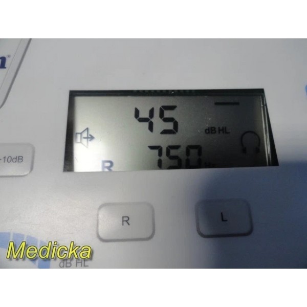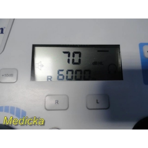 - Right-side frequency (Hz) control knob is black, while the left dB HL knob is gray