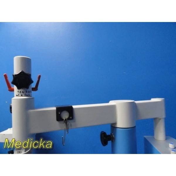 - Viewing Configuration: Single-surgeon binocular viewing head installed (assistant / examiner head not present)