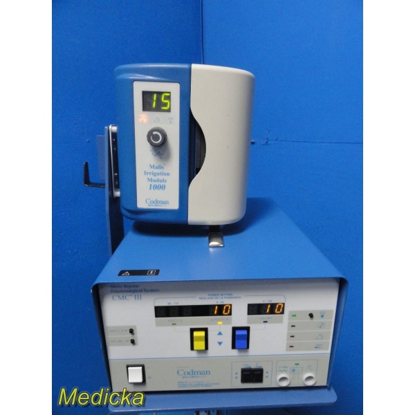Item: | Codman Malis CMC III Bipolar Electrosurgical System w/ Irrigation Module 1000, Foot Control & Cart |