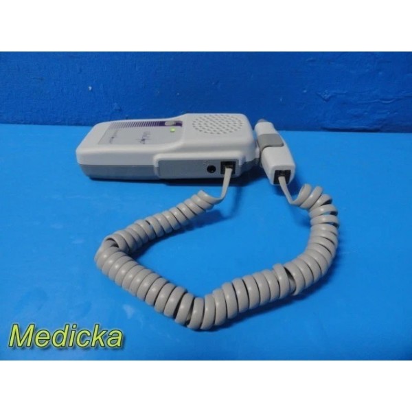 This is a pre-owned medical device intended for professional use. Preventive maintenance and full clinical verification are recommended prior to patient application. Testing was limited to basic operational confirmation of audible Doppler flow. Please note the broken connector retaining clip; although functional during testing, buyers should account for this cosmetic/mechanical defect.