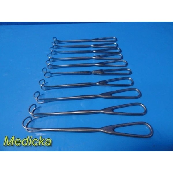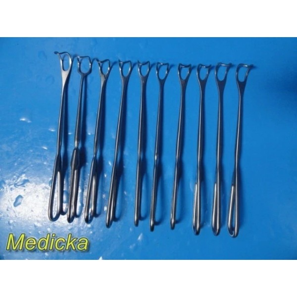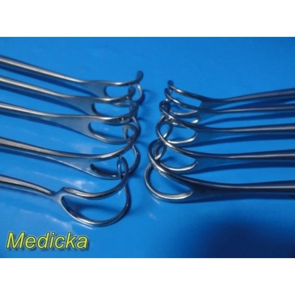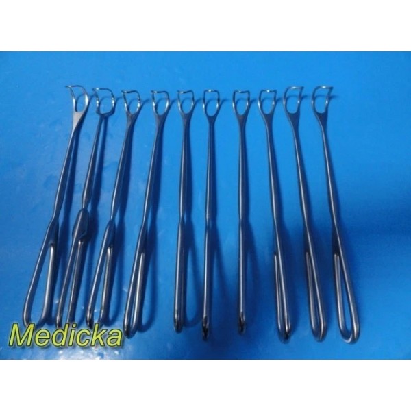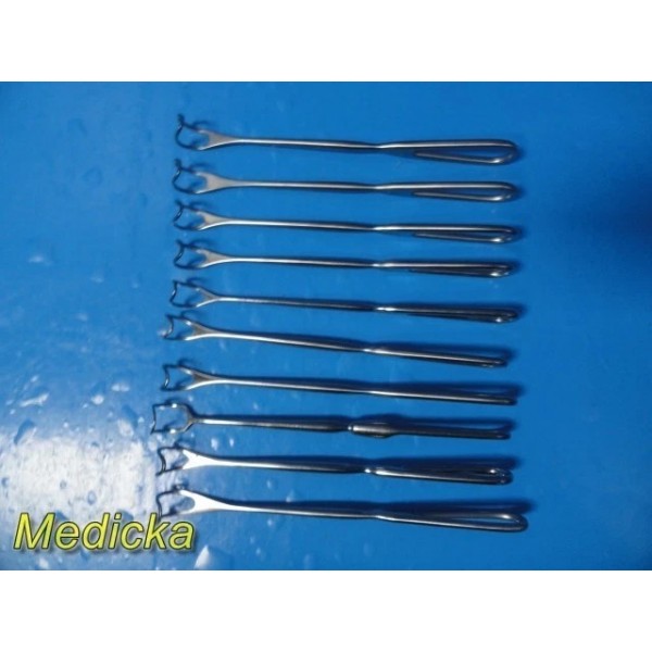 This listing is for a lot of ten (10) Greene thyroid surgical retractors manufactured by reputable brands including Codman Symmetry, Weck, and Sklar. These retractors are commonly used in ENT and thyroid procedures for controlled soft-tissue and throat retraction. The lot includes instruments measuring approximately 8 inches and 8¾ inches in length.