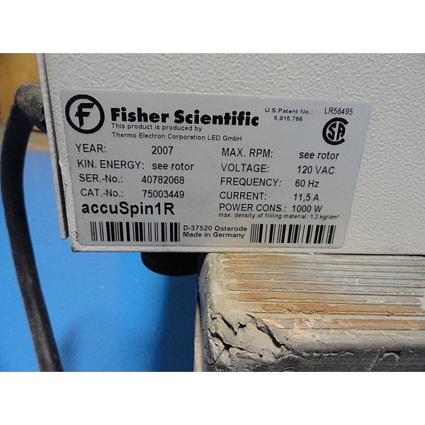 2007 Fisher Scientific AccuSpin 1R Cat 75003449 Refrigerated Centrifuge ~15906