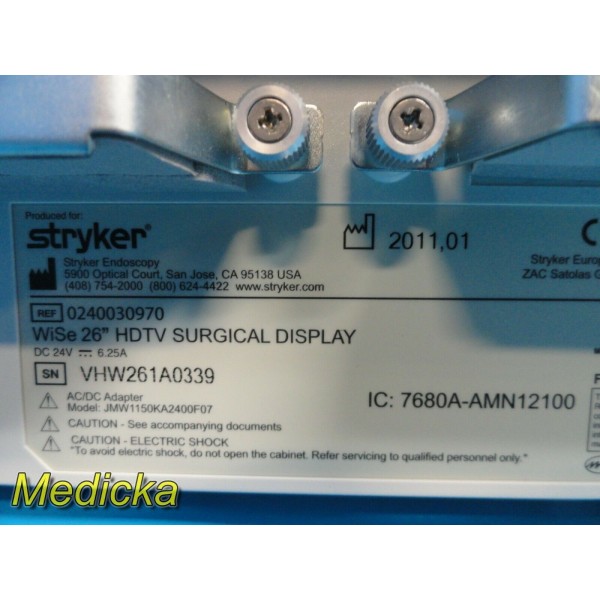 2011 Stryker WiSe 26" HDTV Surgical Display Monitor W/MonitorCover+Adapter~17666
