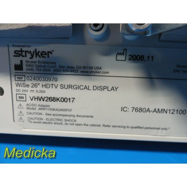 Stryker WiSe 26" HDTV Surgical Display Monitor With New Power Adapter ~ 17766
