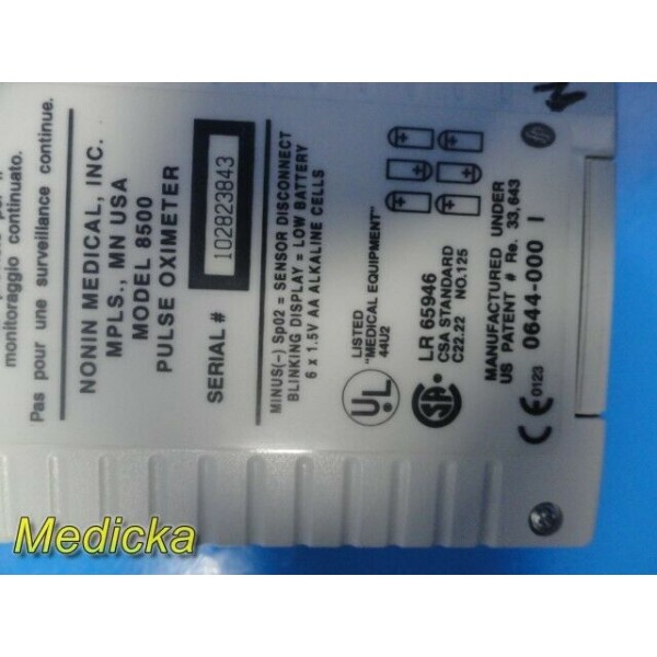 Nonin Medical 8500 Pulse Monitor W/ Adult & Pediatric Reusable Sensor ~ 26443