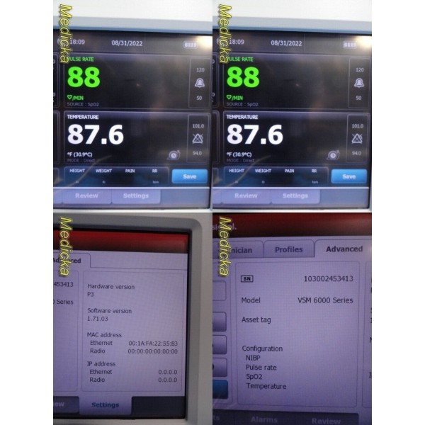 Item: | Welch Allyn VMS 6000 Series Ref 64NTXX Connex W/ SP9319C SpO2 Sensor , NBP hose and Temp probe |