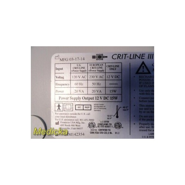 Item: | 2014 Crit-Line III Patient Monitor by Fresenius W/ Adapter, Sensor & Mount |