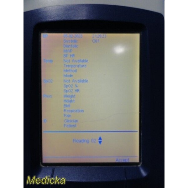 Item: | Welch Allyn 45NE0 Spot Vital Signs LXI Monitor (Nellcor) W/ Leads & PSU |