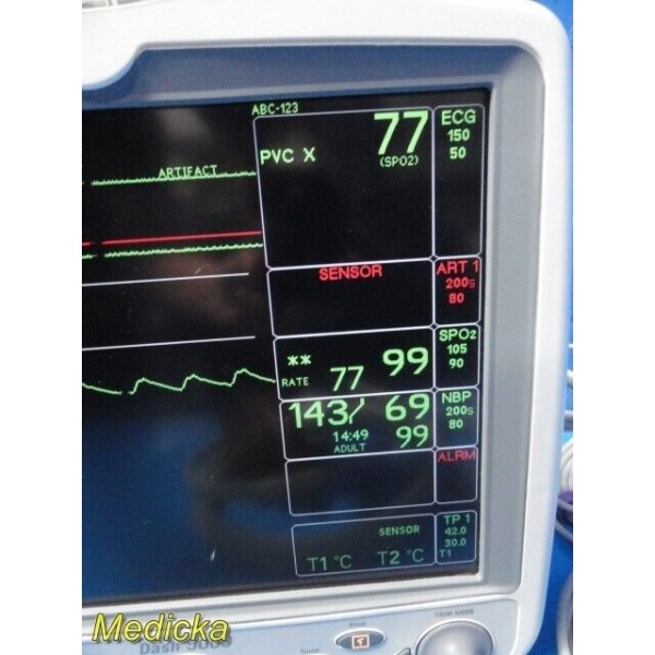 Item: | GE Dash 5000 Patient Monitor (IPB, NBP, ECG, SpO2, TEMP) W/ NEW Leads |