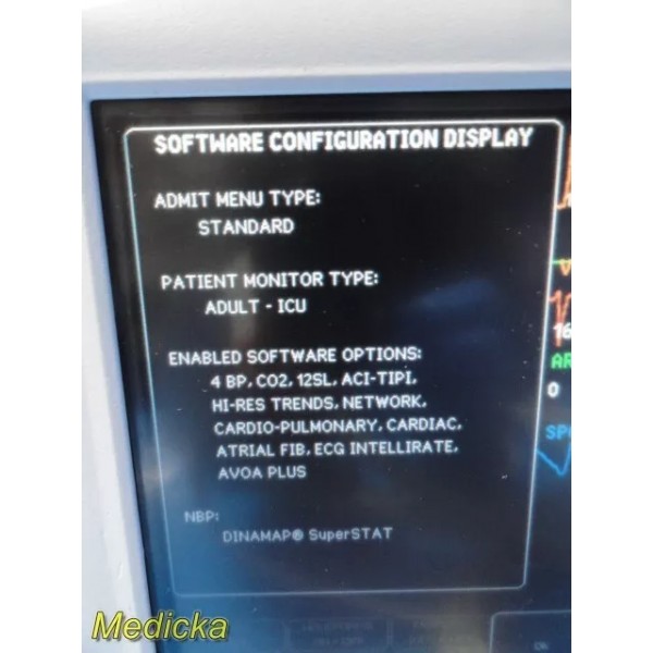 *Software: 4BP; Network; ECG Intellirate, NBP Dinamap Super Stat, CO2, 12SL, AC1TIPI, Res Trend, Intellirate, IBP, V Cardio Pulmonary, Cardiac