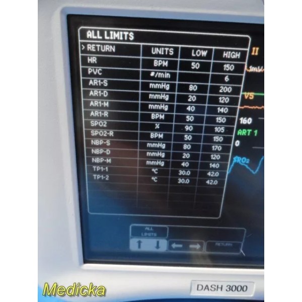 Item: | GE Dash 3000 Multiparameter Patient Monitor (Masimo SpO2) W/ Patient Leads |