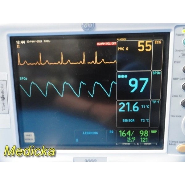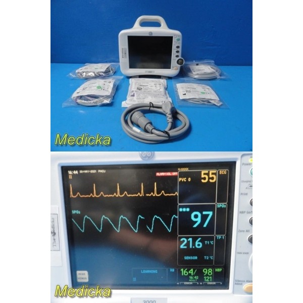 Item: | GE Dash 3000 (NBP,Temp,SpO2,ECG,CO2) Patient Monitor W/ NEW Leads |
