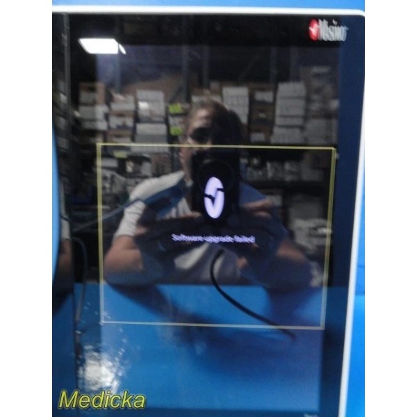 This Masimo Root RDS7A platform powers on but fails at the software upgrade window and does not proceed further. Device is being sold strictly as-is, for parts or non-functional use, without any warranty. Battery is charged and holds charge, but overall health is unknown—installing a new battery is recommended for any attempted repair or restoration.