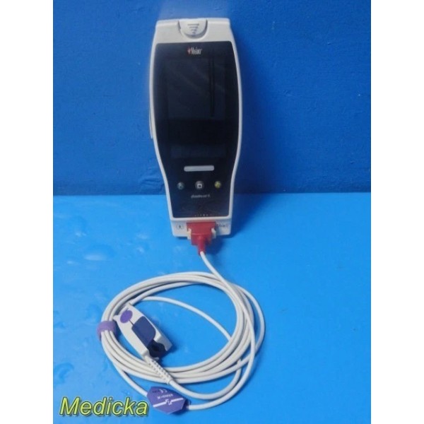 Masimo Radical-7 SpO₂ Module (2021) with new reusable SpO₂ sensor and SpO₂ adapter cable. This handheld monitoring device provides accurate SpO₂, pulse rate (BPM), and perfusion index (PI) measurements.