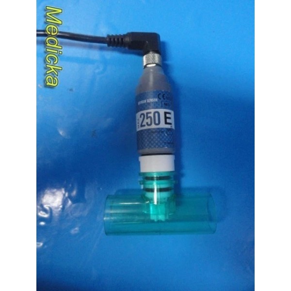Included Sensor: Maxtec MAX-250E Oxygen Sensor (REF: 125P03-002, S/N: JH181099119, Exp. 2025-11-30) mounted with a green airway adapter.