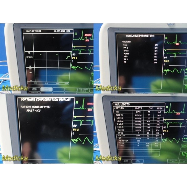 Parameters Installed: 3 × IBP, TEMP/CO, NIBP, ECG, SpO₂ (Masimo type), Defib Sync