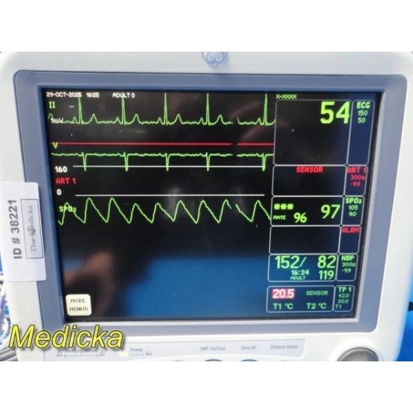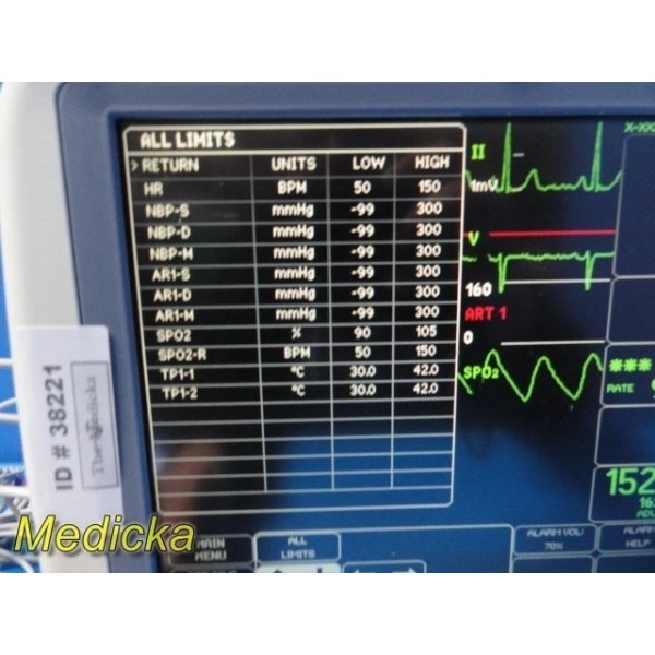 - Parameter Recognition: ECG, SpO₂, NIBP, TEMP/CO, and 3×IBP parameters detected and displayed.