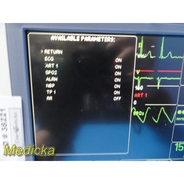 Parameters Installed: 3 × IBP, TEMP/CO, NIBP, ECG, SpO₂ (Masimo type), Defib Sync
