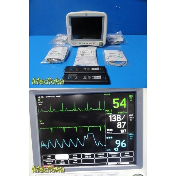 2013 GE DASH 4000 Patient Monitor W/ NEW Patient Leads & 2x Batteries ~ 38647