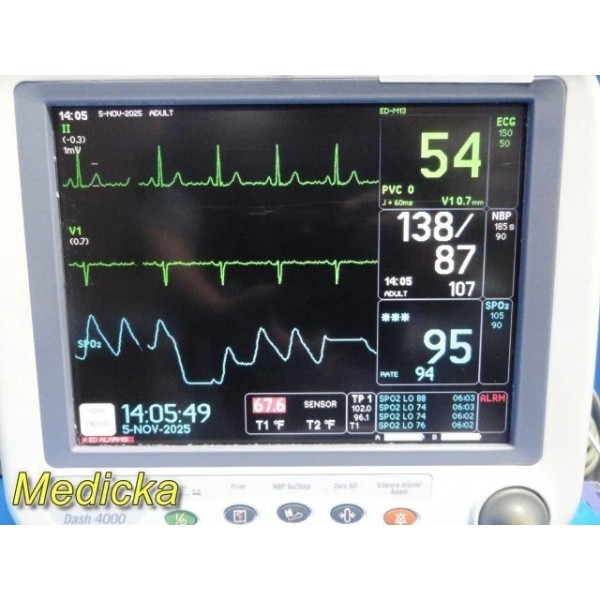 - GE DASH 4000 Patient Monitor (REF 2035598-203, SN SHQ13454405SA)