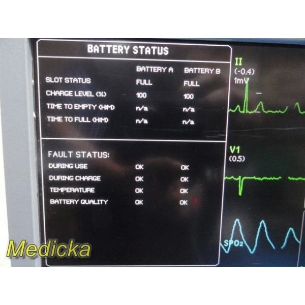 - Both OEM GE Li-Ion batteries passed self-diagnostic tests and offer approx. 3 hours combined runtime.