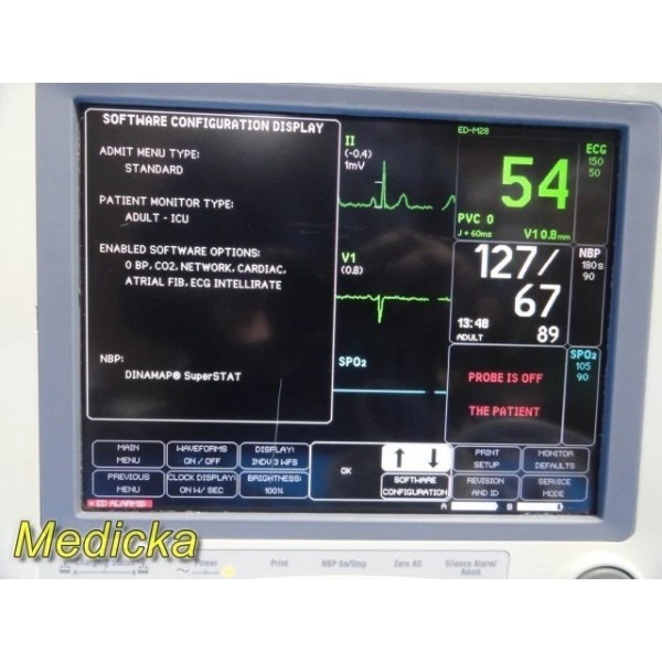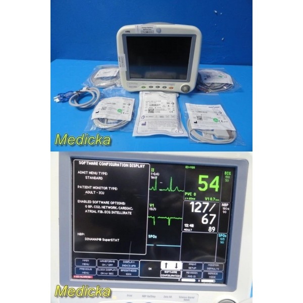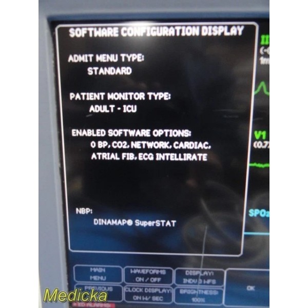 - Enabled Software Options: NIBP, Network, Cardiac, Atrial Fibrillation, ECG IntelliRate, CO₂ Enabled