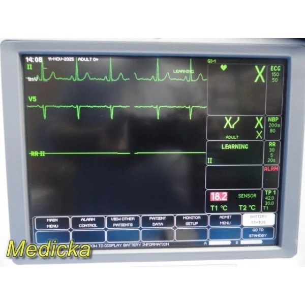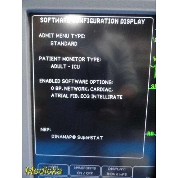 - Enabled Software Options: NIBP, Network, Cardiac, Atrial Fibrillation, ECG IntellIRate