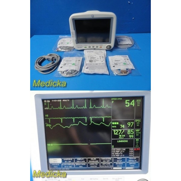 GE Dash 4000 Monitor (CO2 Nellcor Oximax) W/ Dual Batteries & NEW Leads ~ 38266