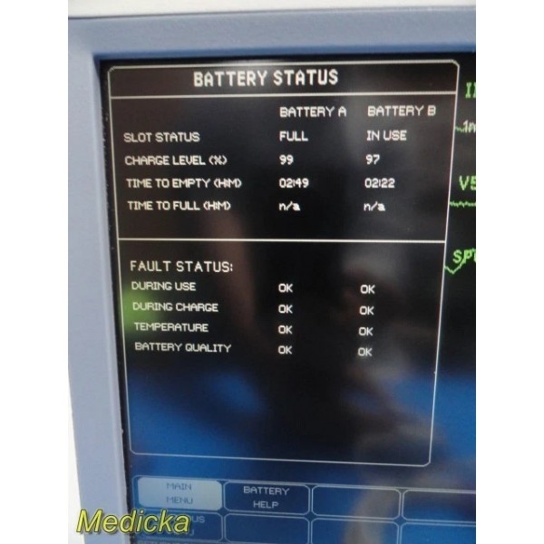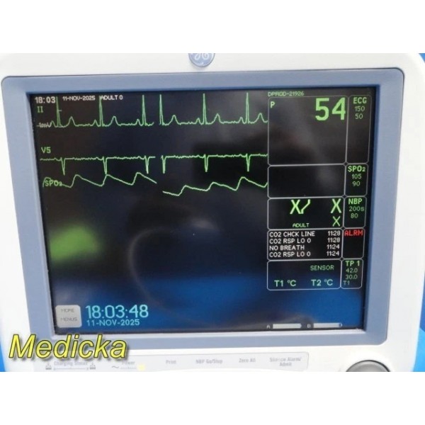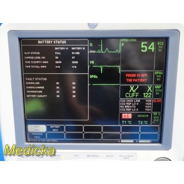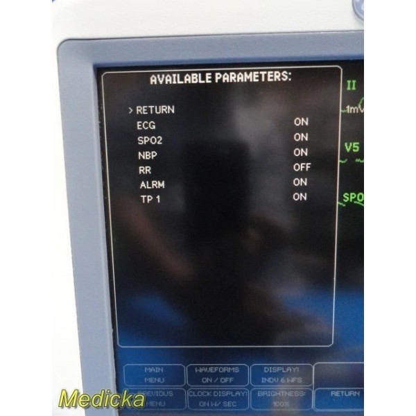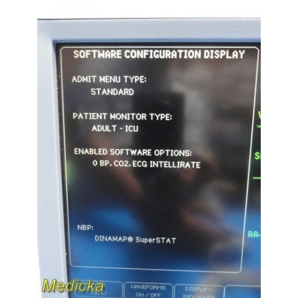 - Enabled Software Options: NIBP, Network, Cardiac, Atrial Fibrillation, ECG IntelliRate, CO₂ Enabled