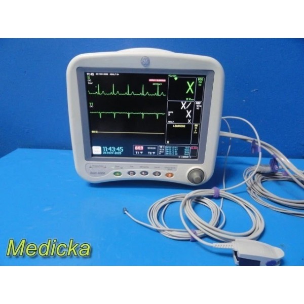 GE Dash 4000 Monitor (Masimo SpO2, NIBP SuperSTAT, ECG, TEMP/CO) & Leads ~38709