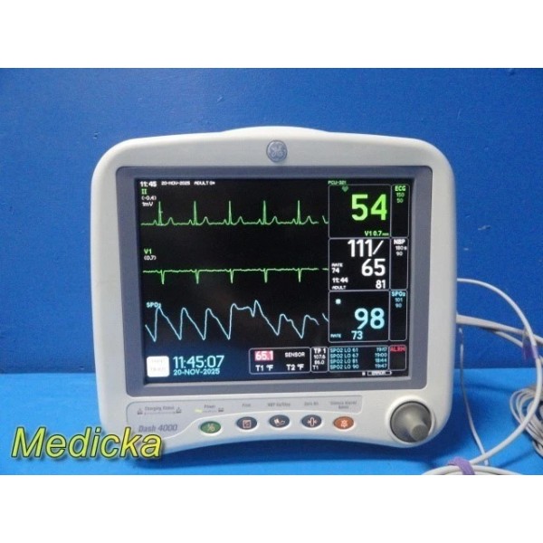 Item: | GE Dash 4000 Patient Monitor (2x IBP, SpO2, NIBP, ECG, Temp) W/ NEW Leads |
