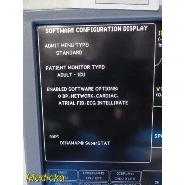 - Enabled Software Options: 0 BP option displayed (no IBP board installed), Network, Cardiac, Atrial Fibrillation, ECG IntelliRate