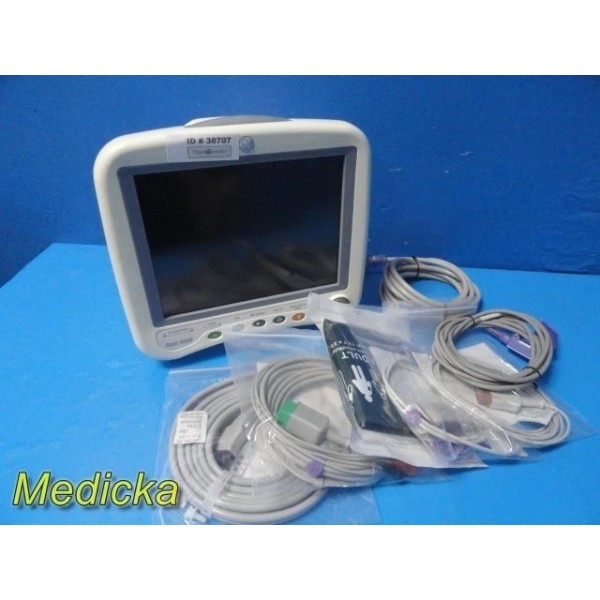 2013 GE Dash 4000 Monitor W/ ECG, NIBP, SpO2, Temp Leads & 2x Batteries ~ 38707