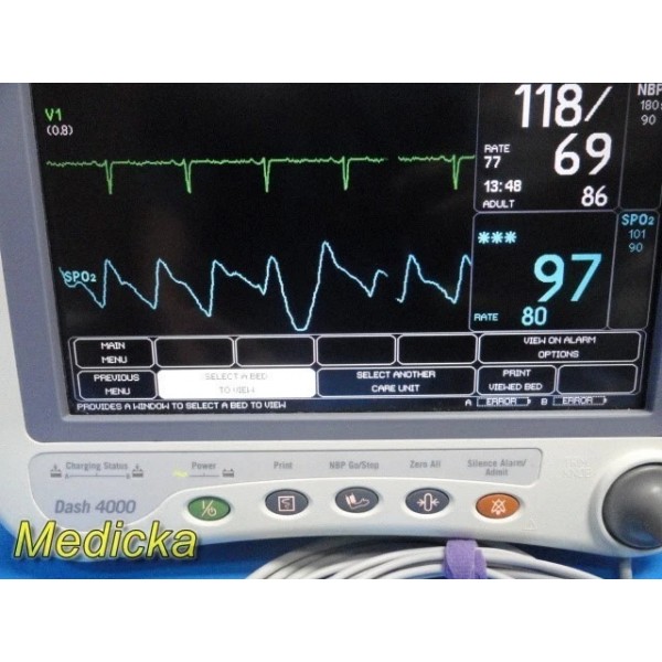 Item: | 2013 GE Dash 4000 | Masimo SpO₂ | NIBP | ECG | Temp | IntelliRate | Tested | No Printer |