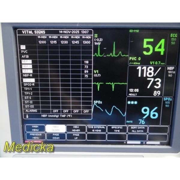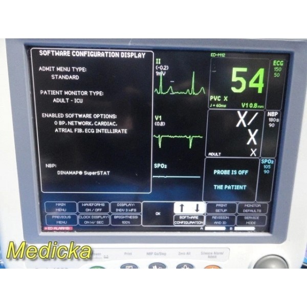 - Enabled Software Options: NIBP, Network, Cardiac, Atrial Fibrillation, ECG IntelliRate