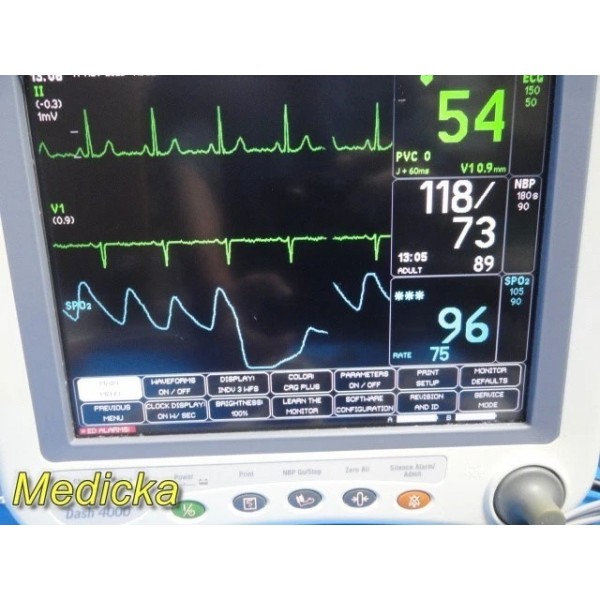 Item: | GE Dash 4000 Monitor (T/CO, SpO2, ECG, NBP, CO2) W/ 2x Batteries & NEW Leads |