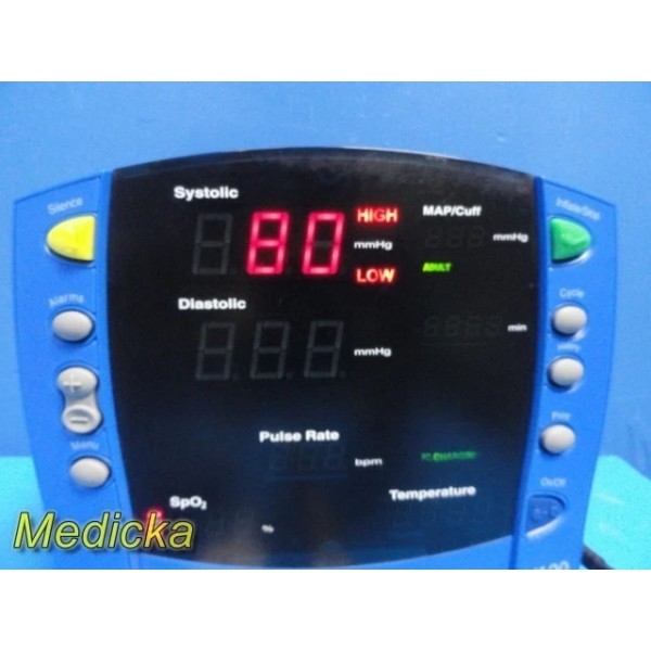 This specific configuration does NOT include temperature hardware. Powered by GE SuperSTAT NIBP and Nellcor OxiMax® SpO₂, it delivers stable, clinical-grade monitoring performance.