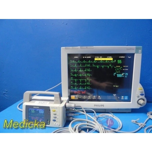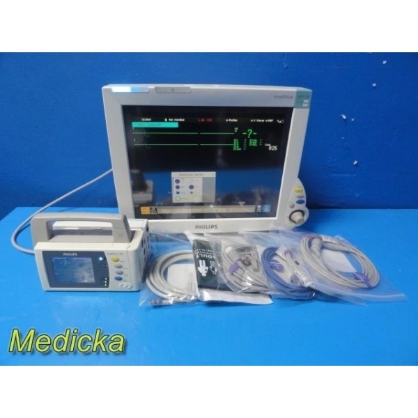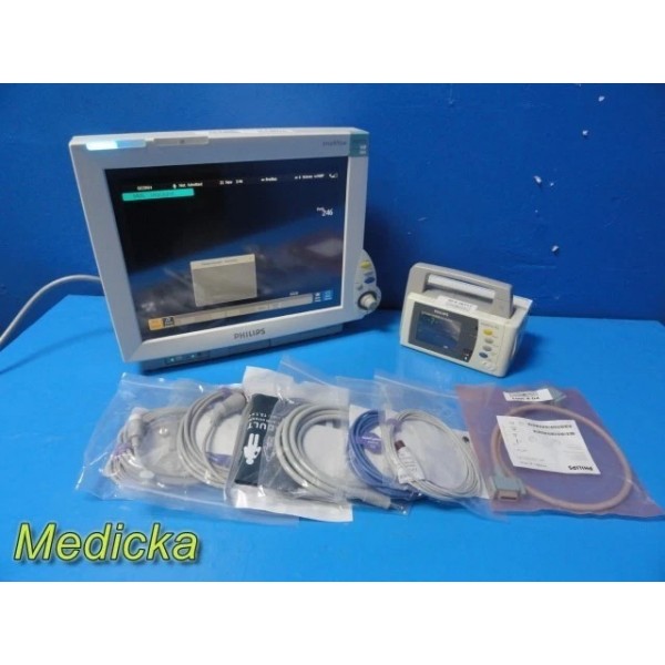 Philips IntelliVue MP70 Monitor W/ X2 Monitor + M3012A Module & NEW Leads ~38717
