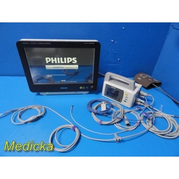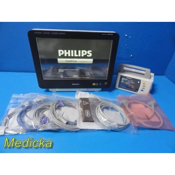 Complete Philips IntelliVue MX700 monitoring package including X2 Transport Monitor and M3012A Hemodynamic Module. Suitable for anesthesia, ICU, ER, and high-acuity settings. Supports advanced hemodynamic and multi-parameter monitoring, including ST analysis, 12-lead display, and full transport capability. Tested and verified with new accessories included.