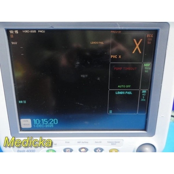 Item: | GE Dash 4000 Patient Monitor – SpO2 Masimo / 2×IBP / ECG / NIBP |